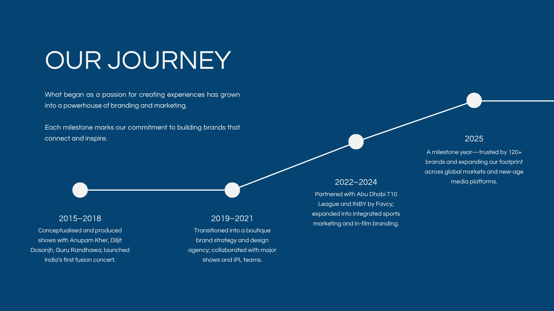 Established in 2015, we are a full-service marketing and branding consultancy dedicated to crafting impactful stories that elevate brands and foster meaningful audience connections.